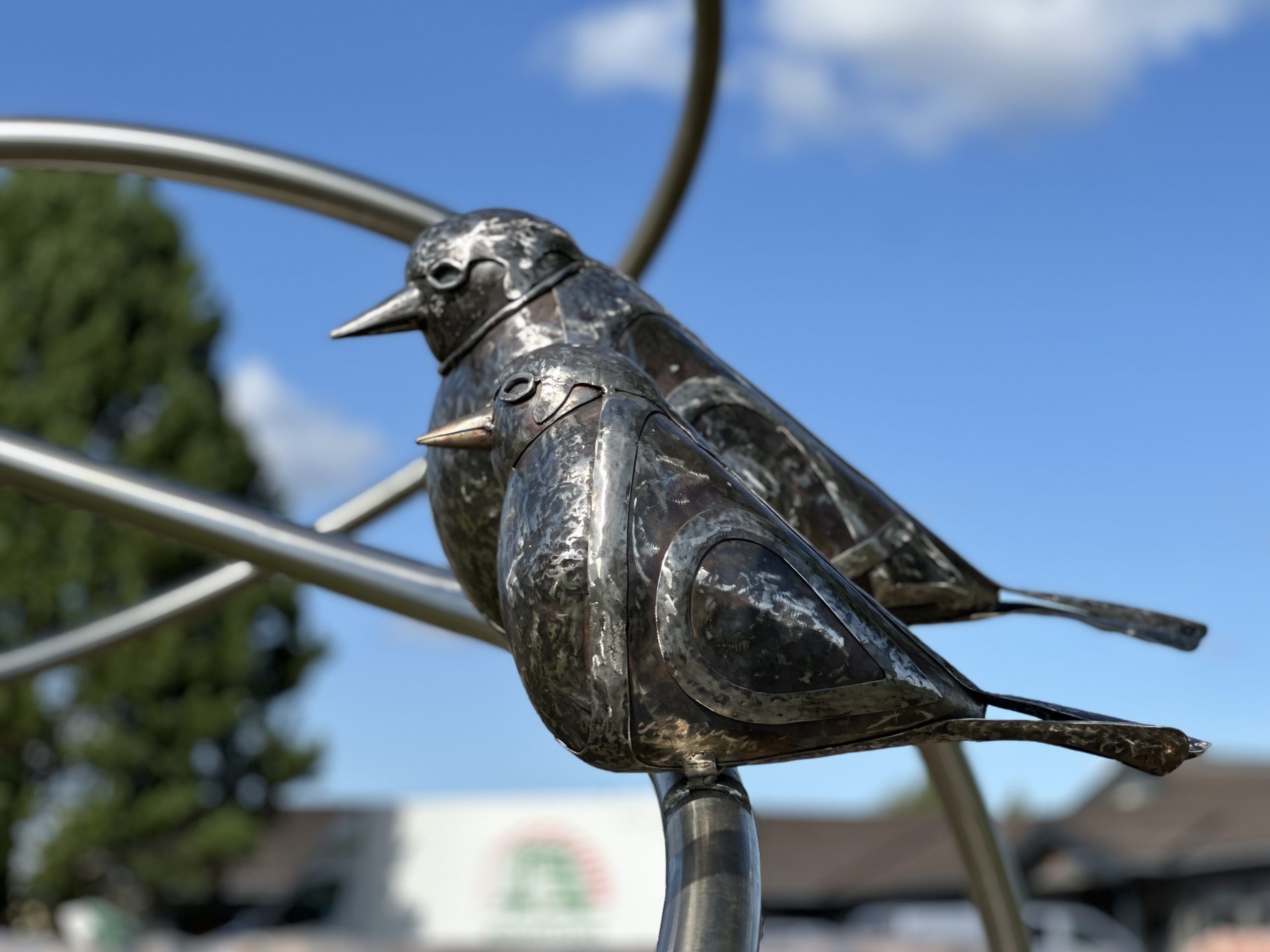 “Olavskilde” i pulverlakket smijern, monument over Olav den Hellige i Våler i Innlandet, 2024.